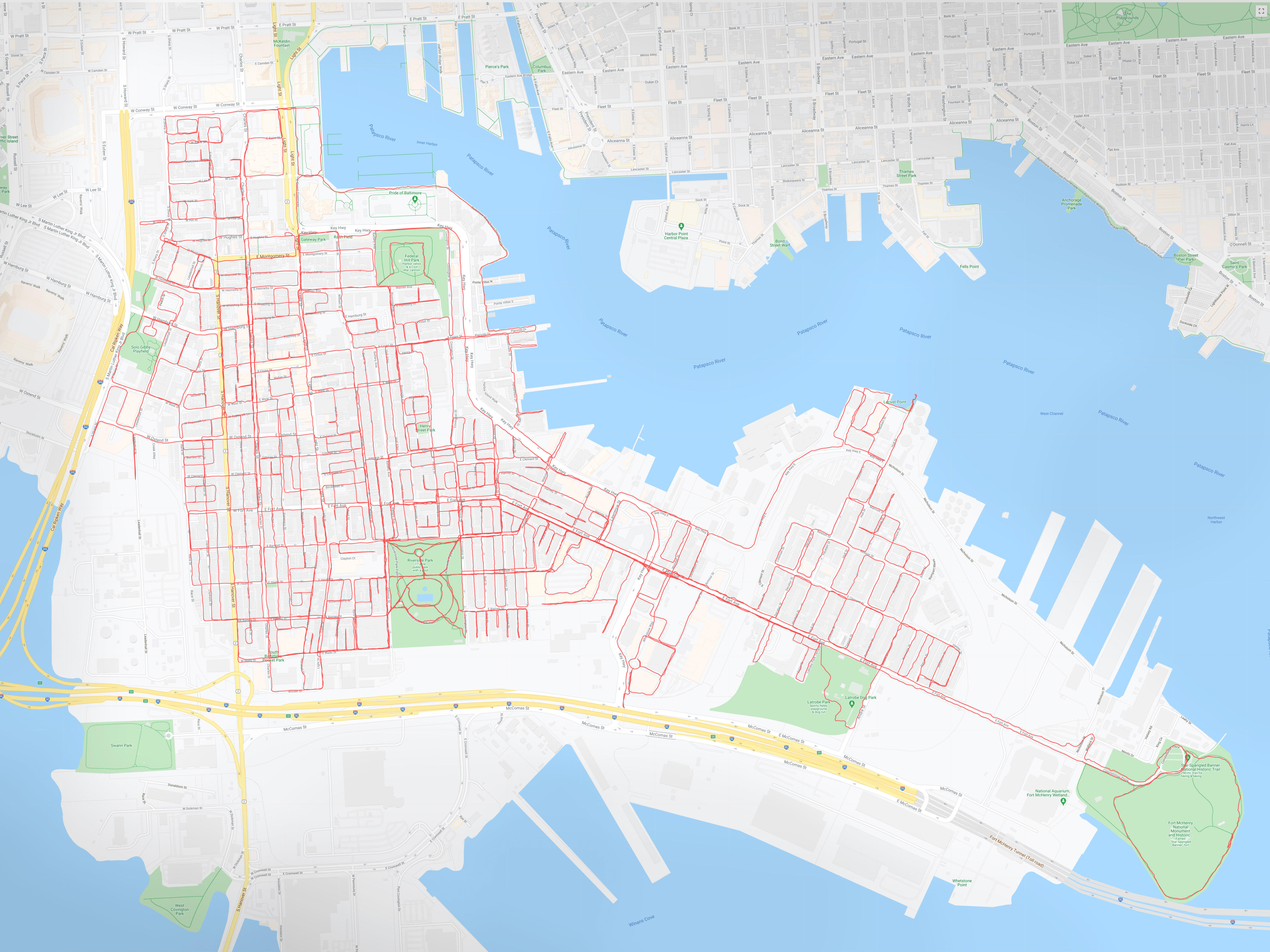 I have not been able to travel this year due to the COVID-19 pandemic. So I opted to explore my own backyard in a new way: I challenged myself to walk every street and alley in my neighborhood. This included the areas of Federal Hill, Riverside, Locust Point and Otterbein of Baltimore, MD. It was a good way to get myself outside and exercise a bit, especially since I was spending so much time at home to be socially distant. It turned out to be quite an undertaking, and took many walking trips to accomplish! I added an additional challenge to take at least photo every time I went out. Although I have lived in this area for a number of years, there were many new gems to photograph! Check out some of my photos and walking stats below!