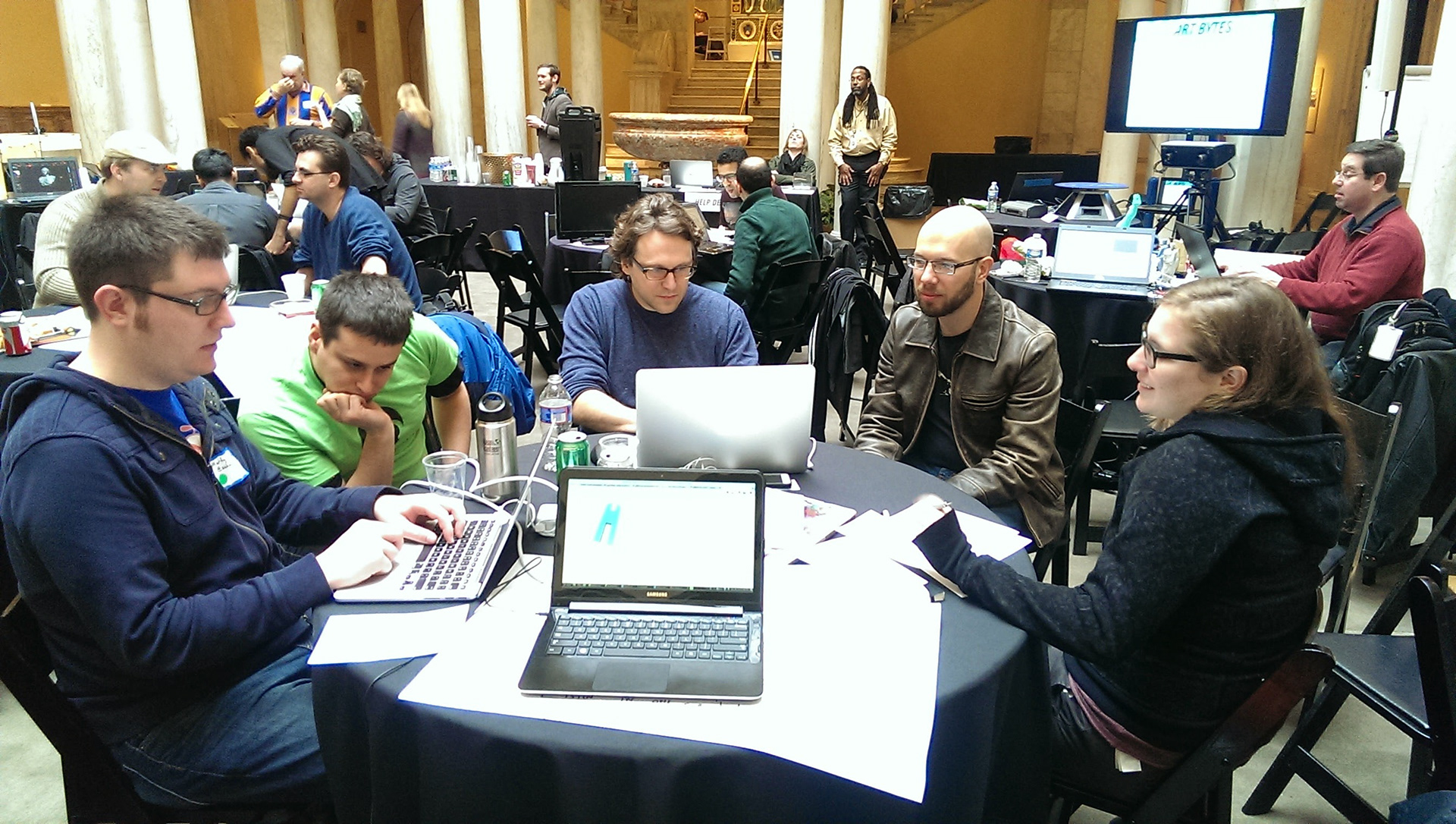At the Walters Art Museum's annual Art Bytes hackathon, our team set out to recreate a full scale replica of a well-known piece of Baltimore art: Giuseppe Ceracchi's "Bust of George Washington". With the help of the Direct Dimensions, we were able to take an impressive micron-resolution 3D scan of the statue. Printing the full scale 3D statue would have required professional equipment, and a lot of time and money. So instead, we crowd-sourced the effort. Hobbyists around the world own desktop printers that can print small scale objects. Using 3D modeling software, we sliced the full scale model into 110 unique blocks that home printers would be able to print at home. We created a website that allowed contributors to join our project, download a piece of the model, print it at home, and mail it back to us for re-assembly. The website was live and functional by the end of the hackathon, and a few weeks later our 3D printed replica of George Washington was complete and on display at the 2014 3D Print Show in NYC. By distributing and crowdsourcing the effort, the maker community was able to build something special together.